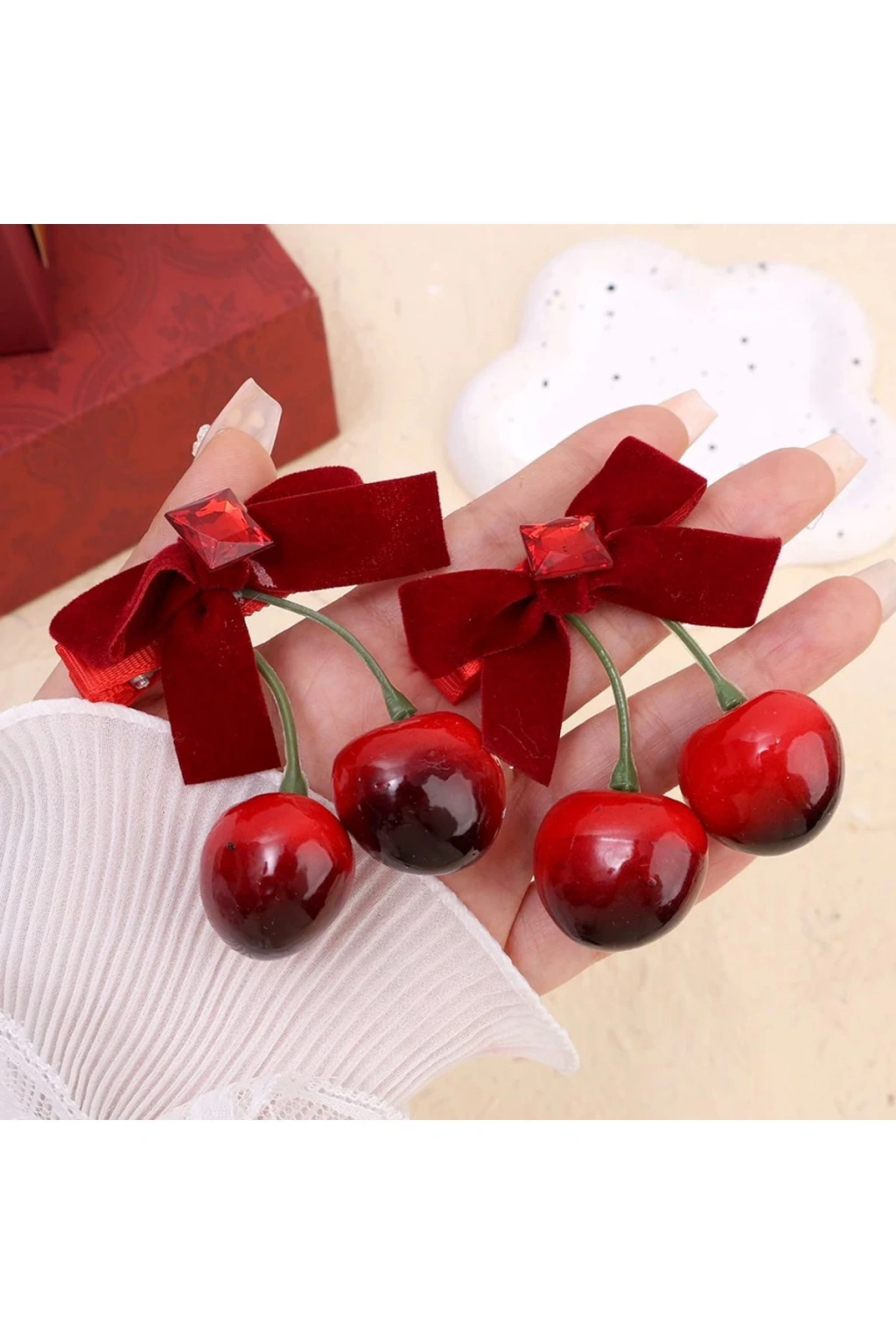 1 ÇİFT KADİFE TAŞLI KİRAZ TOKA