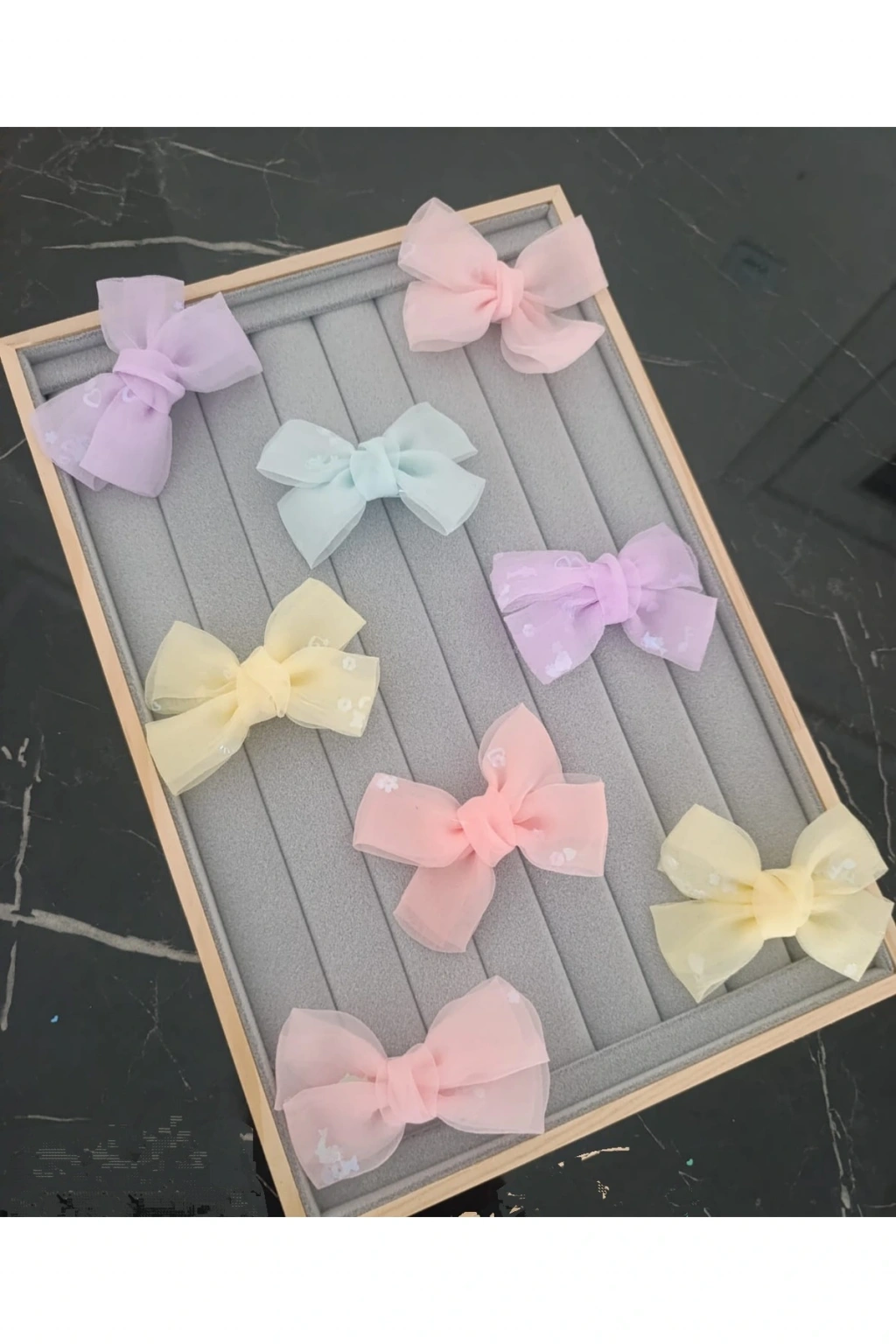 Laleli Organze Sarkıt Uzun Kuyruklu Fiyonklu Metal Klipsli Toka