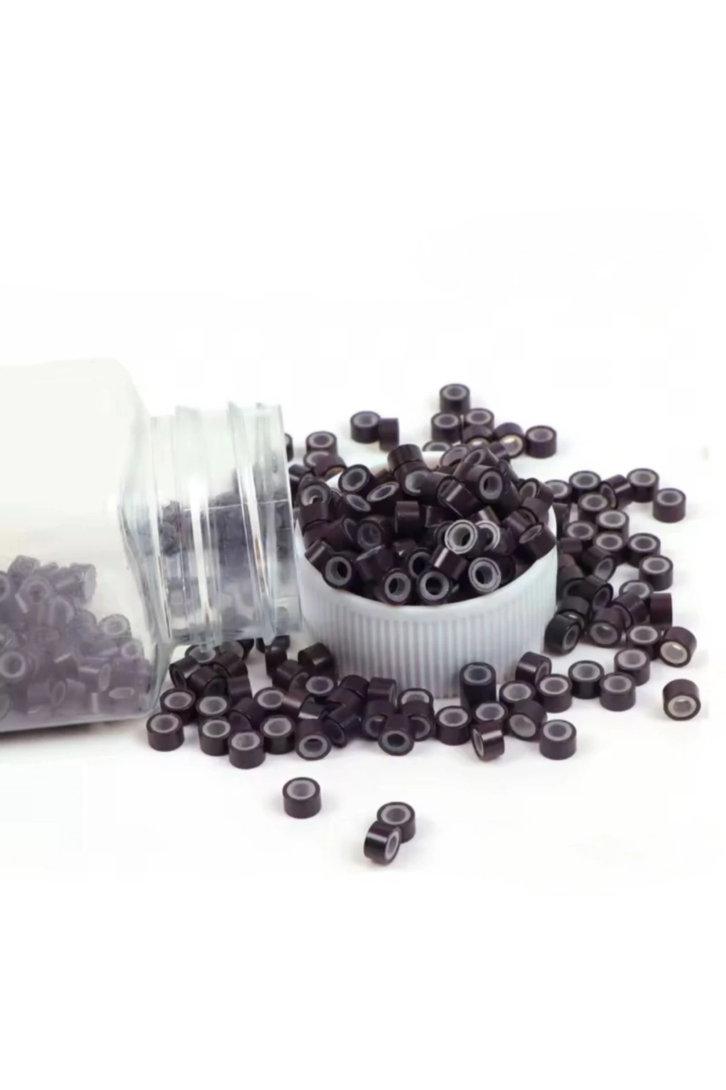 100 Adet Koyu Kahverengi Saç Kaynak Boncuğu Tinsel Takma Boncuğu
