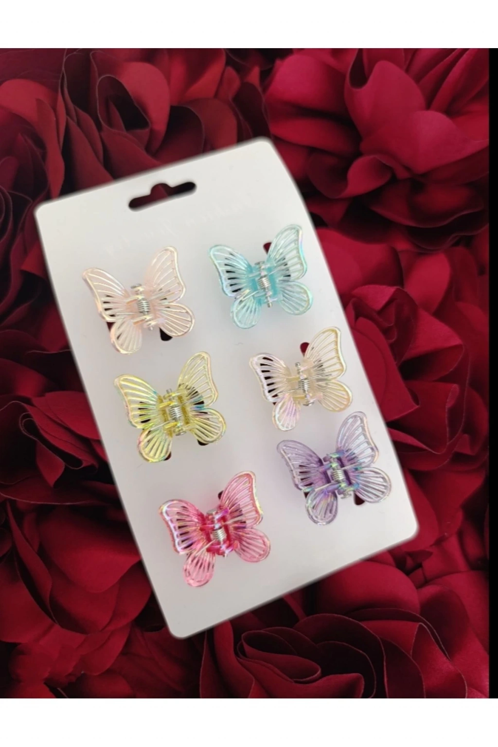 6 ADET RENKLİ AKRİLİK KELEBEK MANDAL TOKA