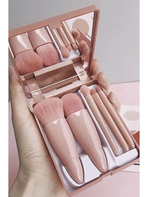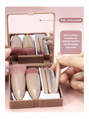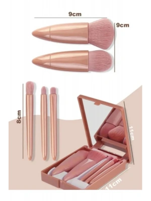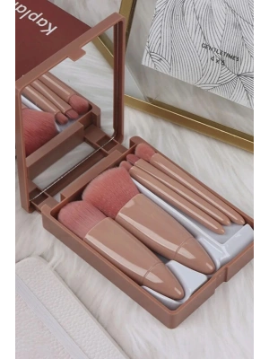 Taşınabilir Aynalı 5'li Makyaj Fırça Seti Göz Farı, Fondöten, Allık Karıştırma, Makyaj Fırçaları