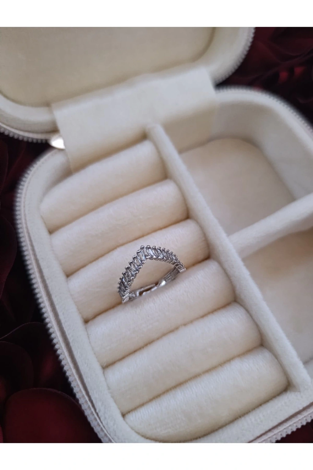 BAGET TAŞLI V YÜZÜK (GÜMÜŞ)