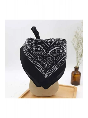 Vintage Siyah Renk Etnik Desen Kare Pamuklu Bandana Fular