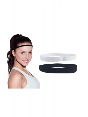 Silikonlu Kaymaz Sporcu Saç Bandı İki Adet Siyah-Beyaz