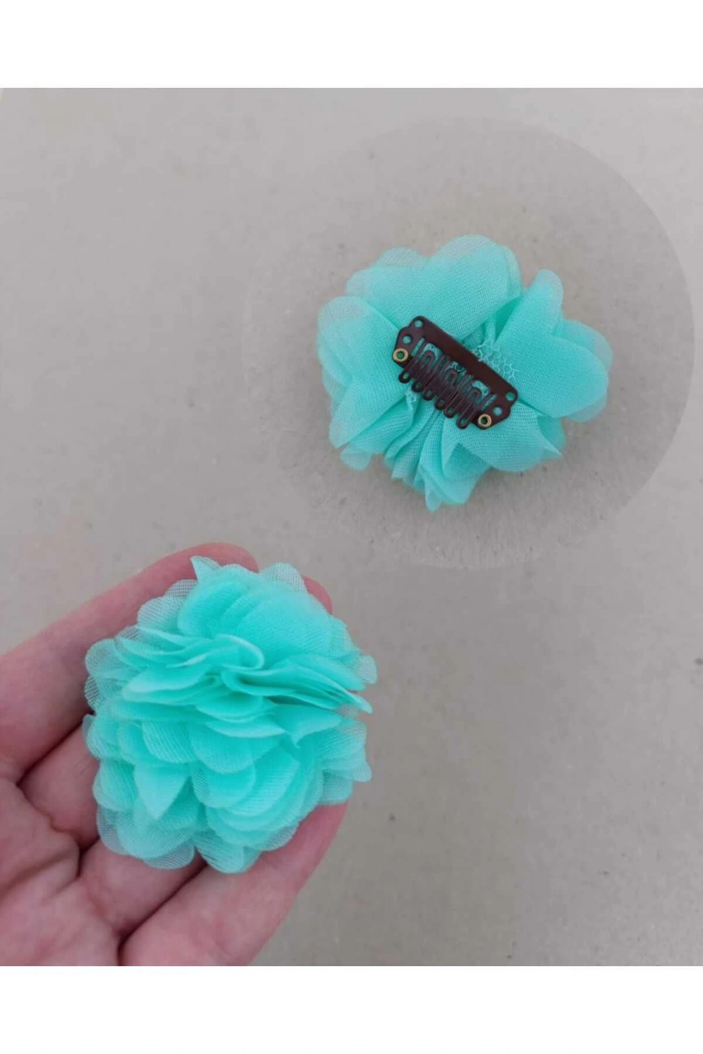 BİR ADET MİNT YEŞİLİ RENK ŞİFON ÇİÇEK YENİDOĞAN TOKASI SAÇSIZ BEBEK TOKASI AZ SAÇLI BEBEK TOKASI