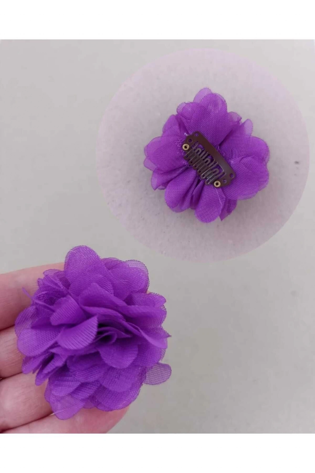 BİR ADET MOR RENK ŞİFON ÇİÇEK YENİDOĞAN TOKASI SAÇSIZ BEBEK TOKASI AZ SAÇLI BEBEK TOKASI