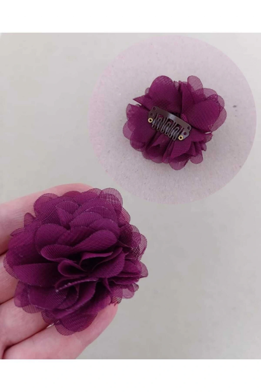BİR ADET MÜRDÜM RENK ŞİFON ÇİÇEK YENİDOĞAN TOKASI SAÇSIZ BEBEK TOKASI AZ SAÇLI BEBEK TOKASI