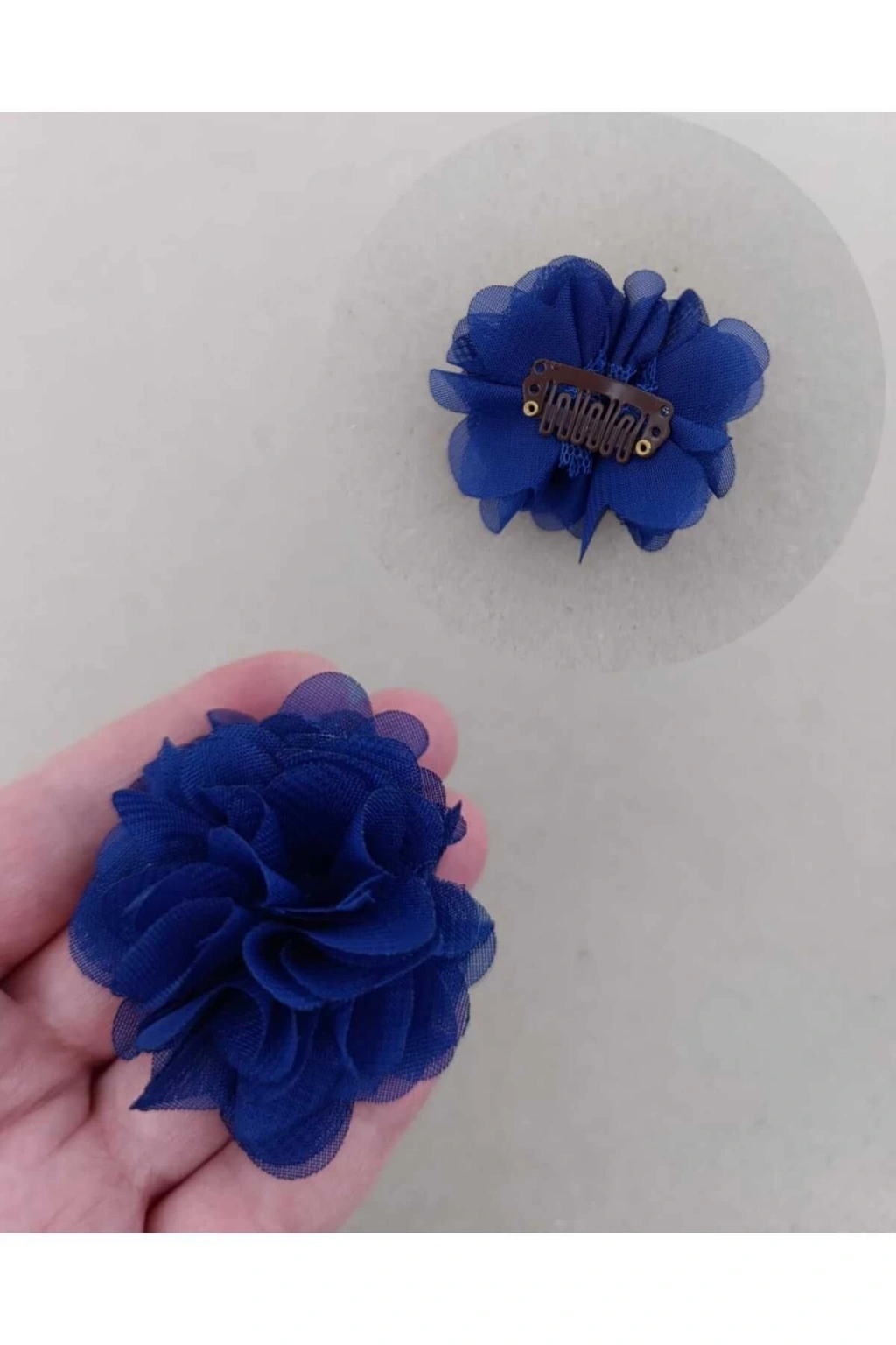 Bir Adet Mavi Renk Şifon Çiçek Yenidoğan Tokası Saçsız Bebek Tokası Az Saçlı Bebek Tokası