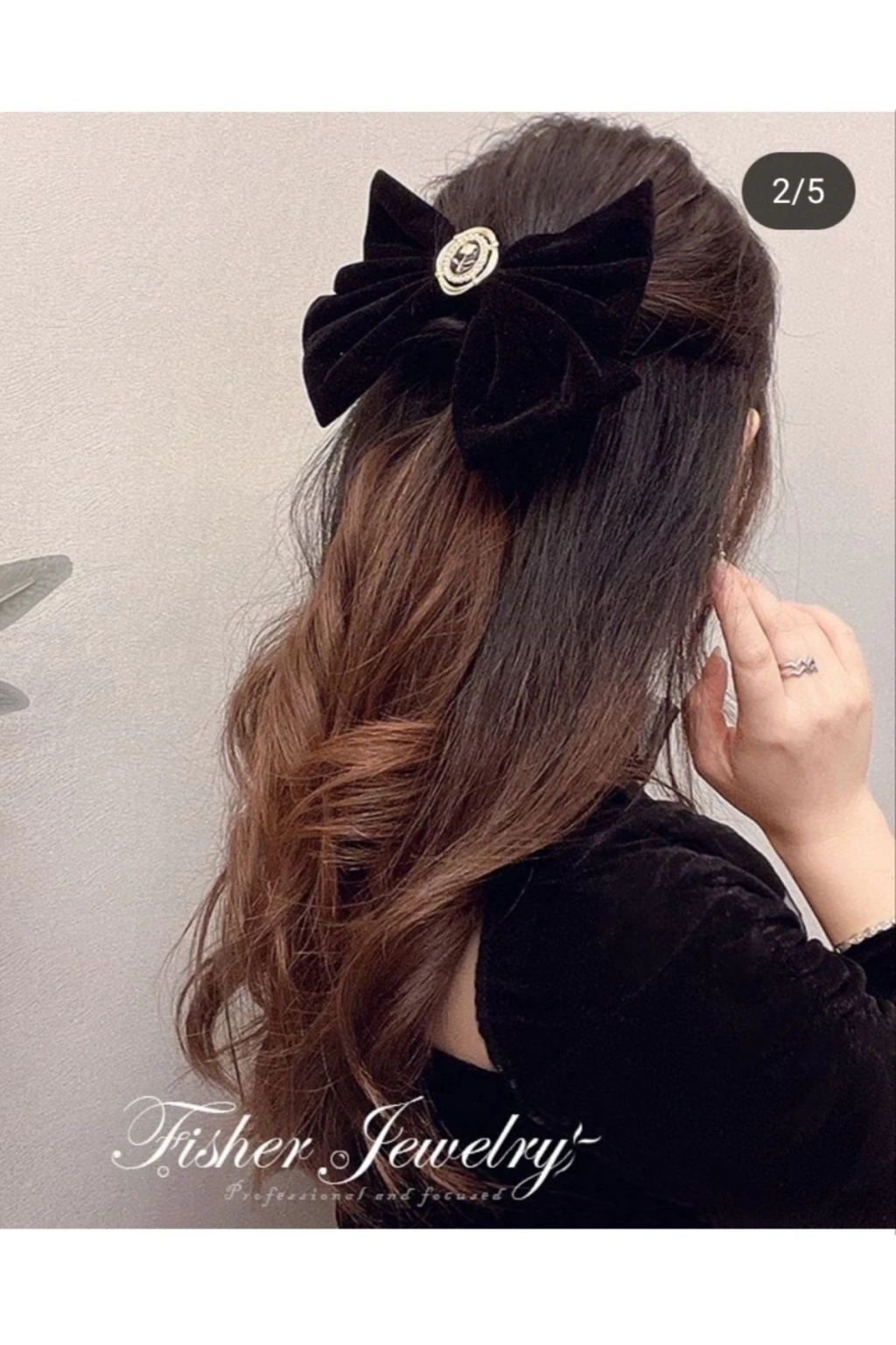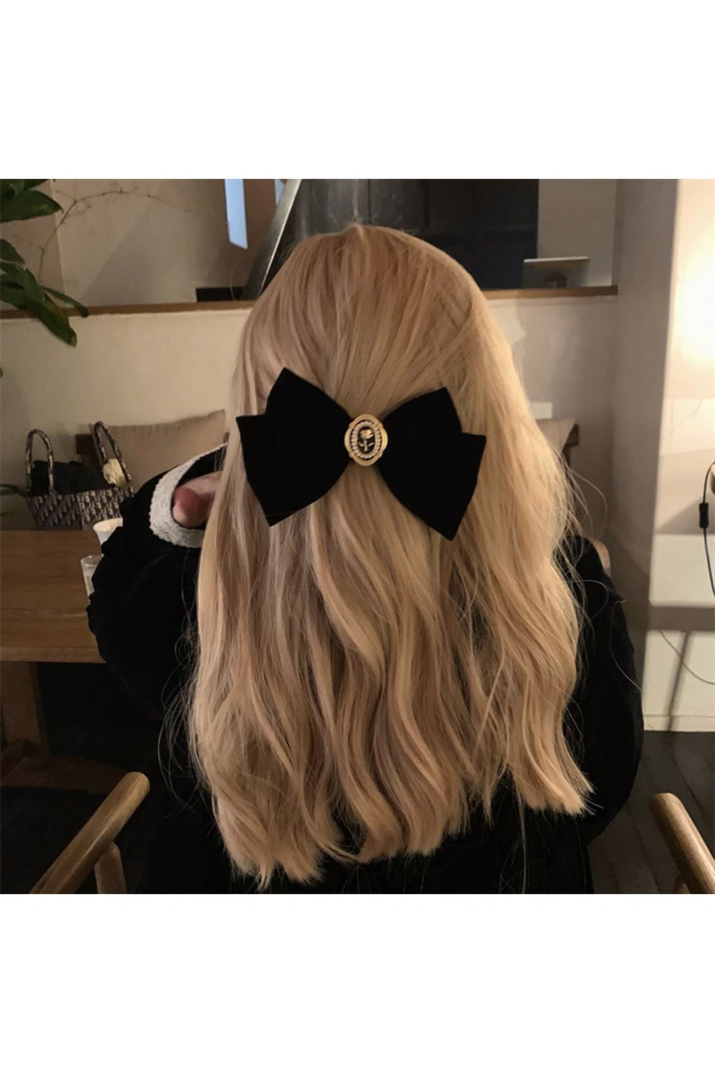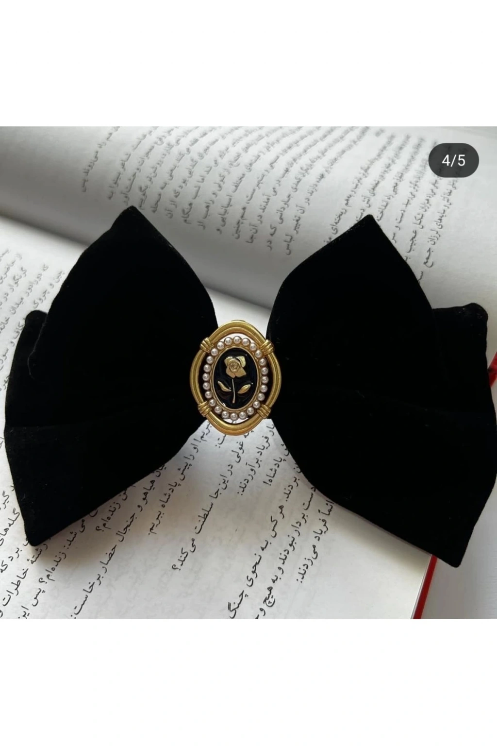 Siyah Şifon Kumaş Fiyonk Toka Otomatik Klipsli