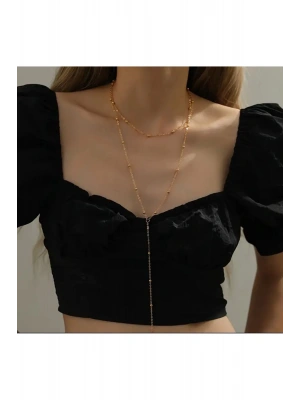 Vintage Top Zincirli Çift Kat Y Kolye (Altın)