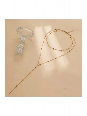 Gold Yuvarlak Boncuklu Zincir Model Y Kolye (Gold)