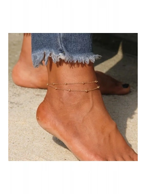 Top Boncuklu Çelik İki Katmanlı Halhal (Gold)