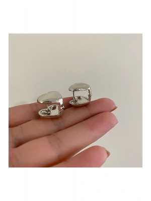 Vintage Çelik Minimal Kalp Figür Küpe (Gümüş)