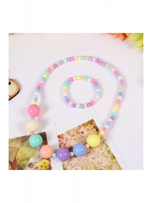 Lily Kız Çocuk Renkli Boncuklu Esnek Kolye Bileklik Seti