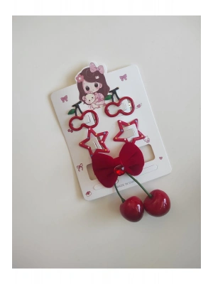 Kız Çocuk Kırmızı Toka Seti Kiraz Toka