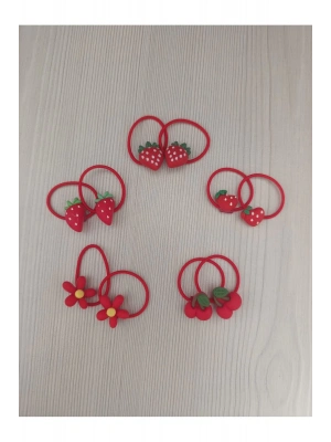 Lily Kız Çocuk Bebek Kırmızı Sever Lastikli Toka Seti 5 Çift