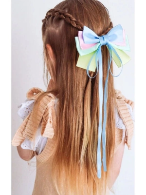 Lily Kız Çocuk Otomatik Klipsli Rengarenk Vivaldi Kurdele Toka Okul Tokası 23 Nisan Tokası