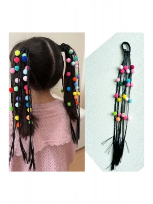 Ponponlu Örgü Saç Lastikli Örgü Toka