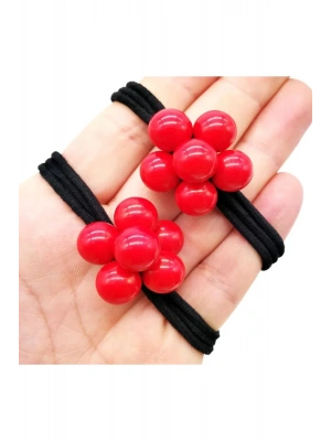 Lily Bir Çift Kırmızı Boncuklu Bağlama Tokası
