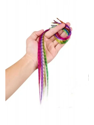 10 Adet Farklı Renklerde Keratinli Sentetik Sülün Tüyü Tak Çıkar Saç Postişi