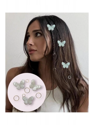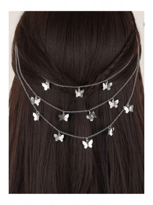 Vintage Kelebekli Saç Zinciri Çıtçıtlı Saç Zinciri Aksesuarı