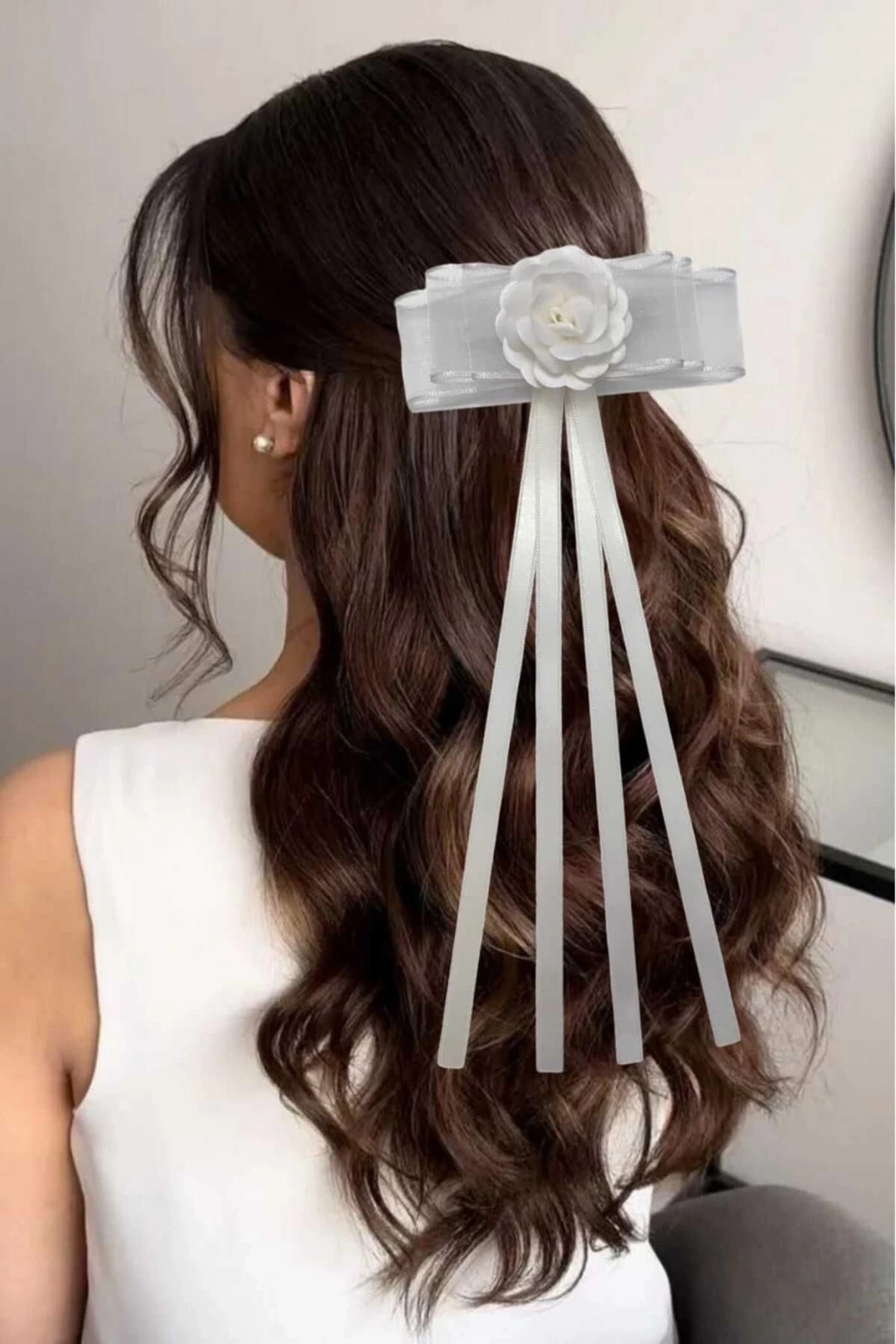 Saten Fiyonk Desenli Fransız Otomatik Klipsli Kumaş Toka