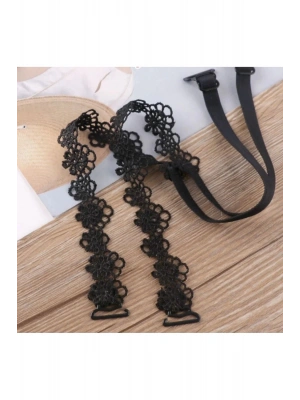 Vintage Siyah Dantelli Sütyen Askısı Gipürlü Sütyen Askısı