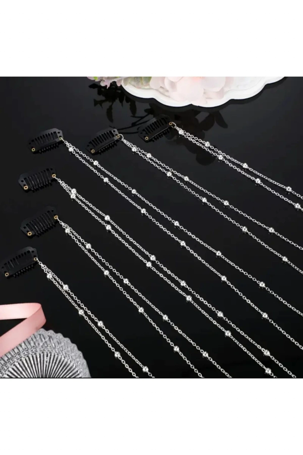 1 Adet Çıt Çıtlı Gümüş Boncuklu Saç Aksesuarı