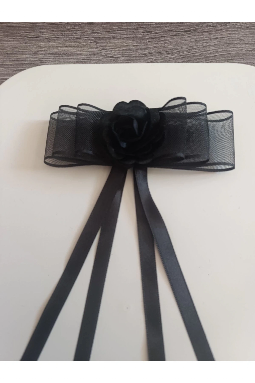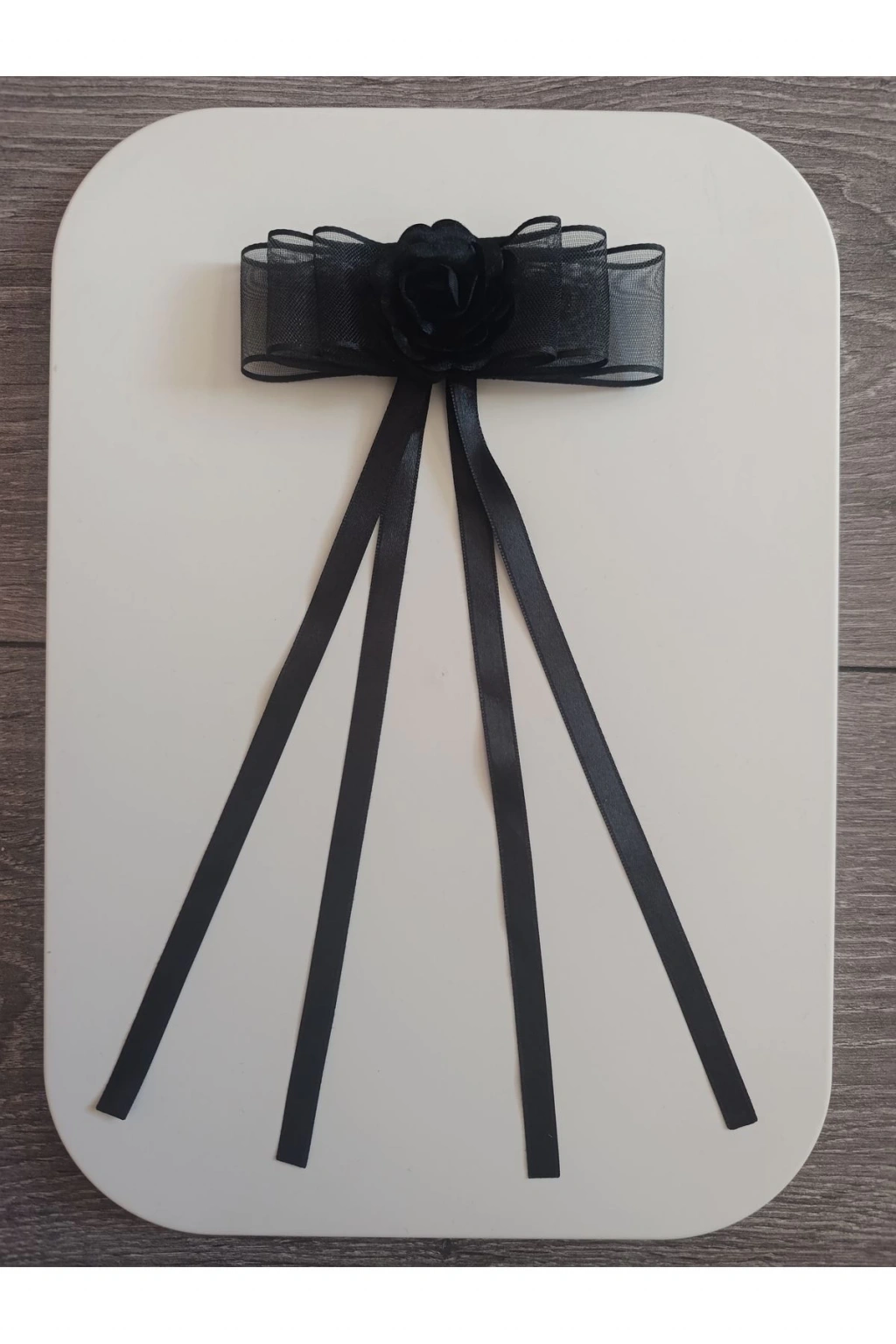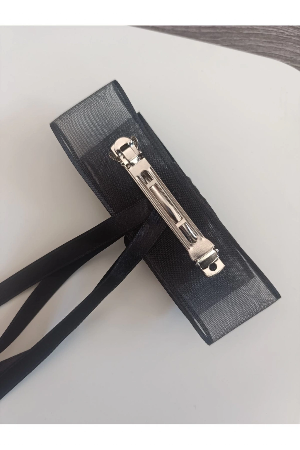 Siyah Şifon Kumaş Fiyonk Toka Otomatik Klipsli