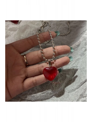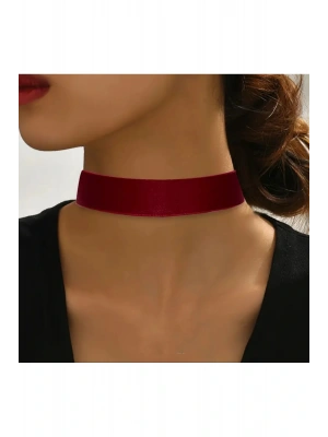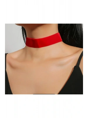 Vintage Kırmızı Kalp Süet İpli Choker Kolye (Kırmızı)