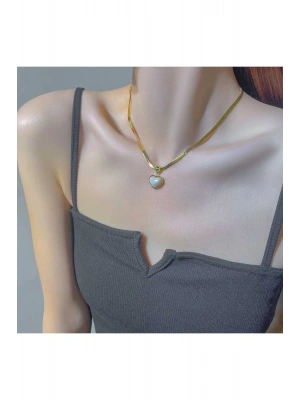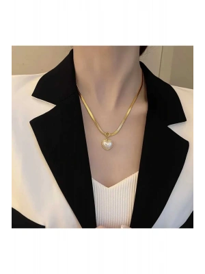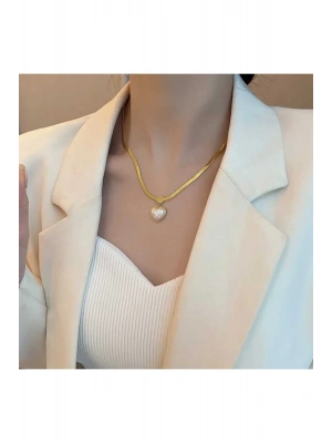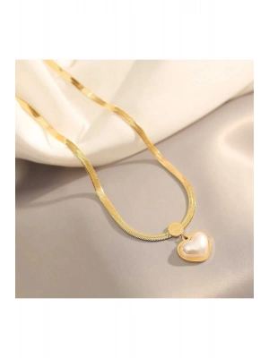 Kadın Gold Renk İnci Love Kolye