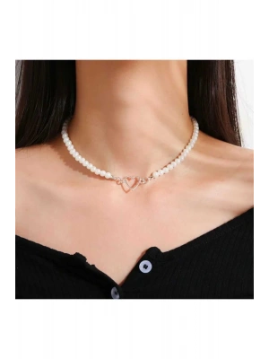Vintage Kalp Detaylı İnci Kolye