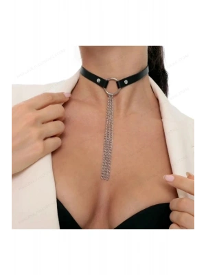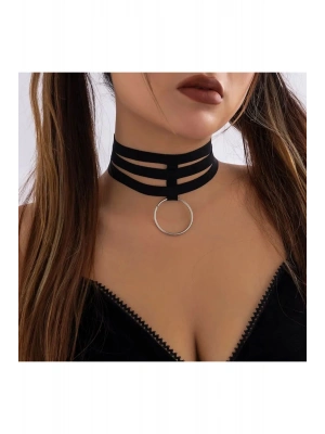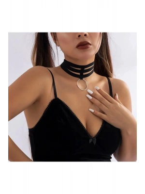 Vintage Halkalı Deri Choker Kolye