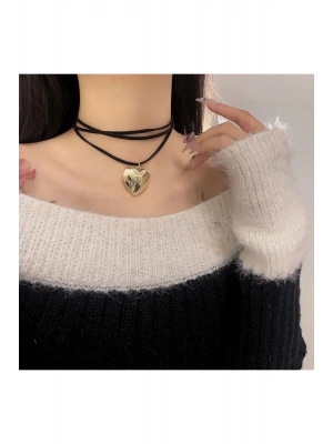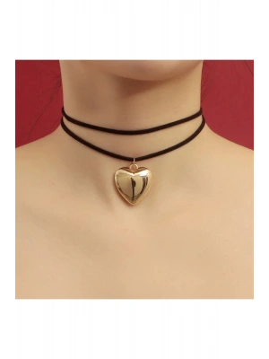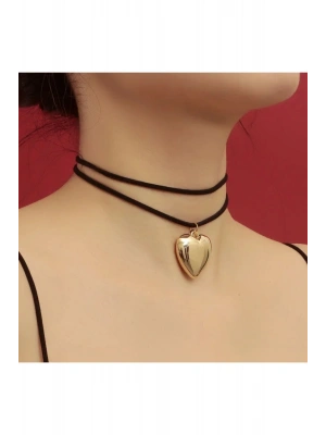 Vintage Çelik Kalp Figür Süet İpli Choker Kolye
