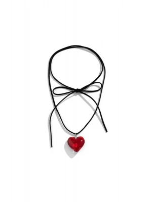 Vintage Kırmızı Kalp Süet İpli Choker Kolye