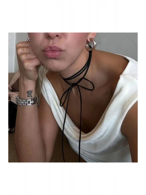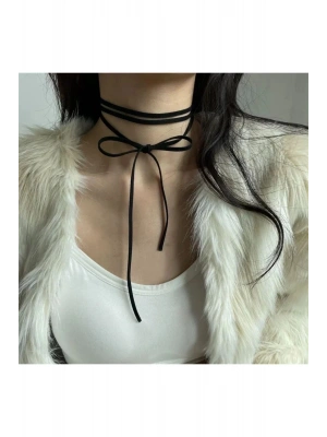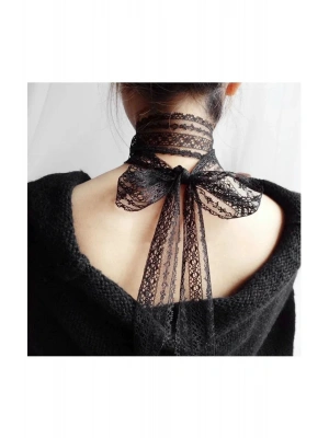 Vintage Çok Amaçlı Siyah Dantel Choker Fular Kolye