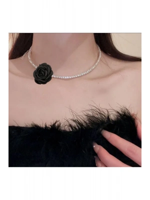 Vintage Zirkon Taşlı Su Yolu Gül Choker Kolye