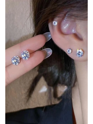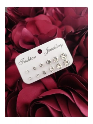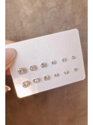 Kadın 12'li Kristal Taşlı Küpe Seti