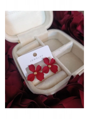 Yaz Kombini Renkli Orkide Küpe (Kırmızı)