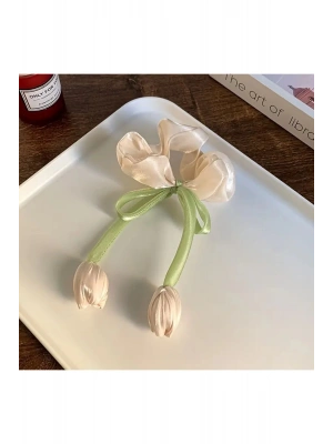 Organze Kumaş Lale Model Scrunhies Toka Simit Toka