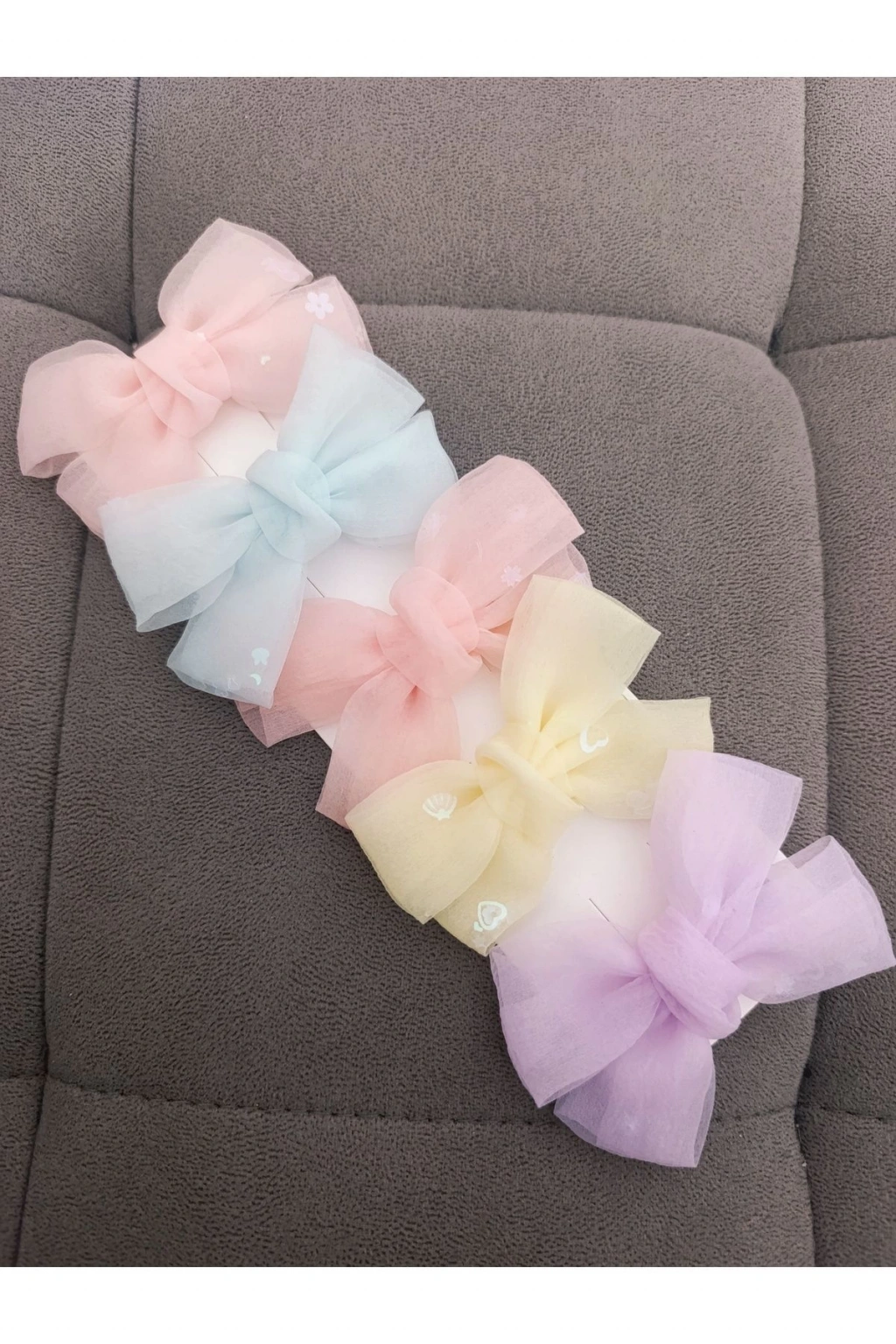 Laleli Organze Sarkıt Uzun Kuyruklu Fiyonklu Metal Klipsli Toka