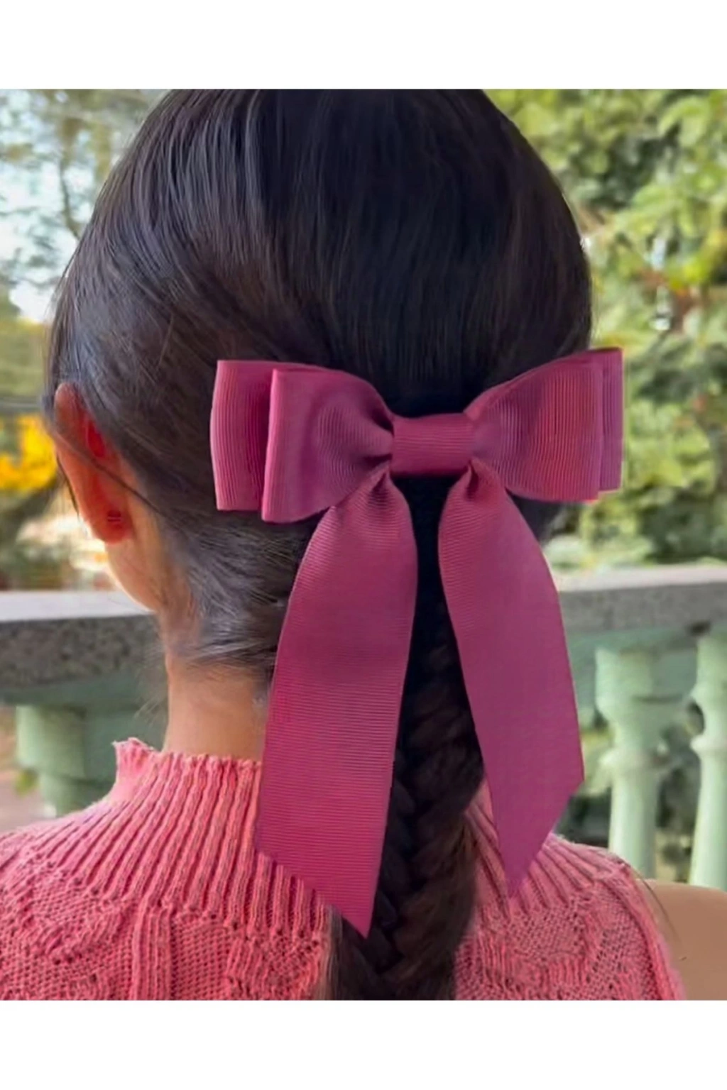 Laleli Organze Sarkıt Uzun Kuyruklu Fiyonklu Metal Klipsli Toka