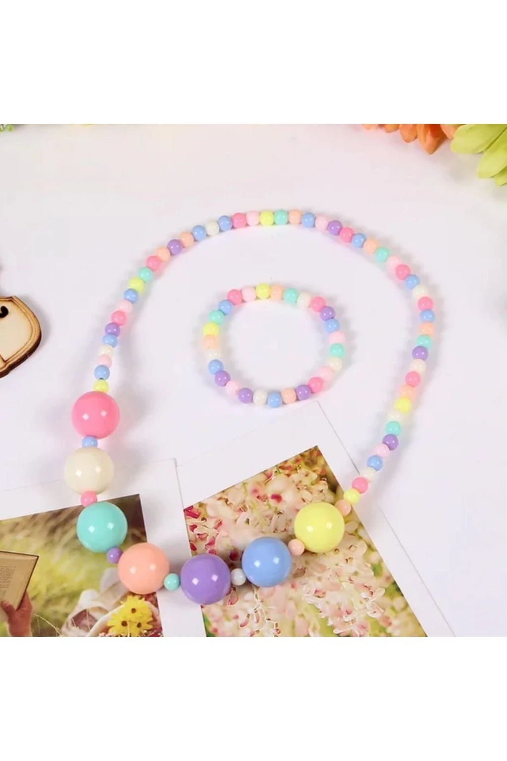 Lily kız çocuk renkli boncuklu esnek kolye bileklik seti, çocukların hareket özgürlüğünü kısıtlamadan şık ve renkli bir görünüm sunar; Esnek tasarımı sayesinde çocukların bileklerinde konforlu bir şekilde takılabilir ve uzun süreli kullanım için uygundur; Boncuk detaylarıyla süslenmiş bu set, çocukların tarzını yansıtan canlı ve neşeli bir görünüm kazandırır; Hem kolye hem de bileklik olarak kullanılabilen bu set, çocukların günlük giyimlerine renk katmak için idealdir; ;;