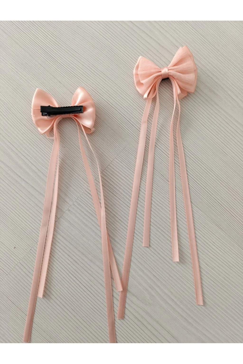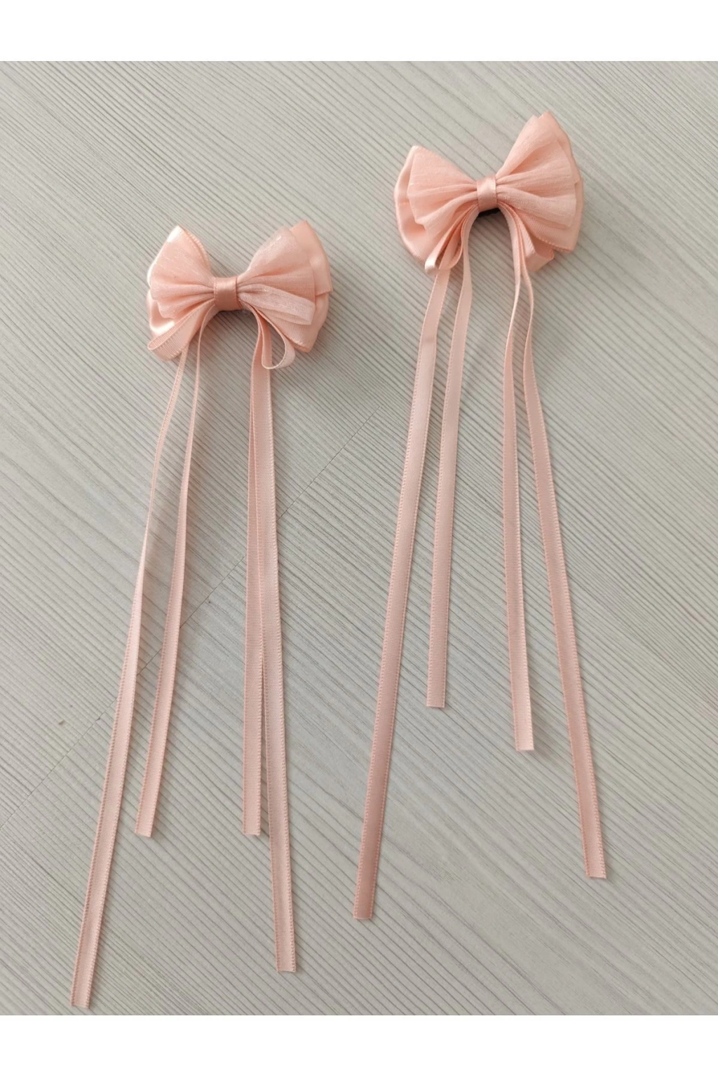Laleli Organze Sarkıt Uzun Kuyruklu Fiyonklu Metal Klipsli Toka