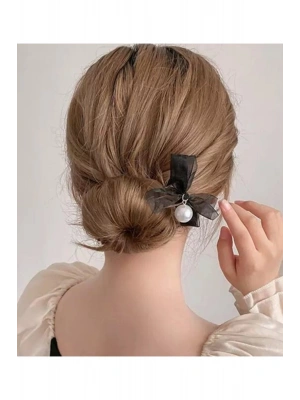 Vintage Siyah Renk Incili Organze Pens Toka