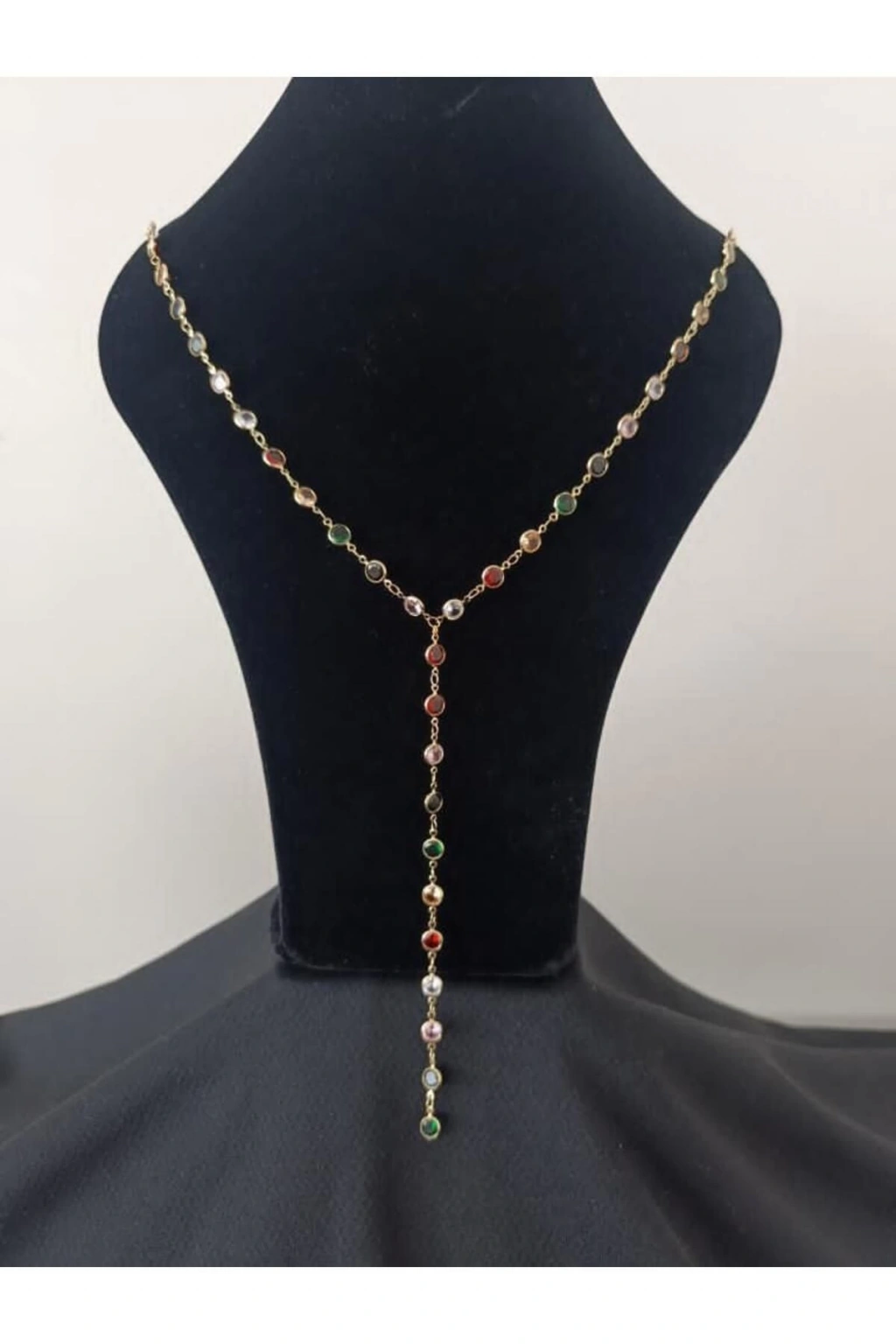 RENKLİ TAŞLI Y KOLYE (SARI)