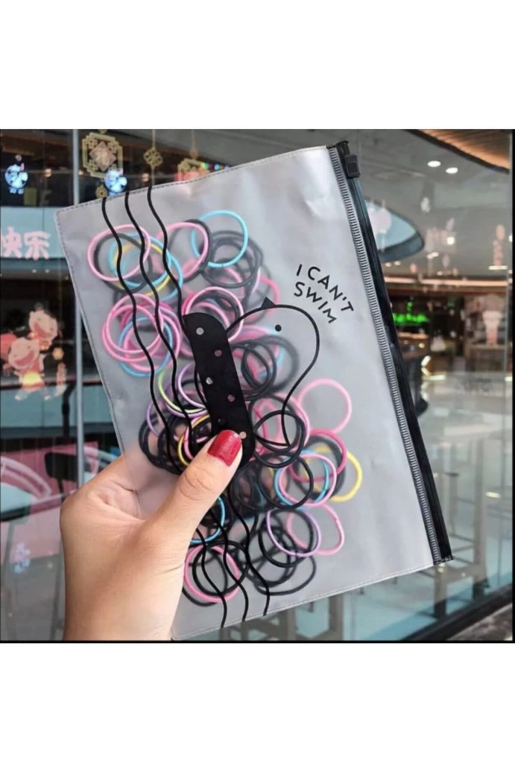 Renkli desenleriyle dikkat çeken şeffaf çantalı toka seti, çocukların tarzını yansıtan bir aksesuar seçeneği sunar; Çocukların yaş grubuna uygun tasarlanmış olup, hem şıklığı hem de kullanışlılığı bir arada sunar; Siyah ve renkli karışık kumaş lastik tokalar, saçları yerinde tutarken aynı zamanda eğlenceli bir görünüm sağlar;
