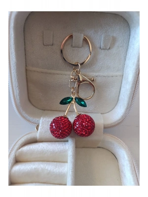 Taşlı Kiraz Charm Çanta Charm Aksesuarı (Kırmızı)
