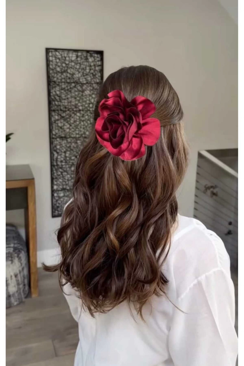 Vintage 15 cm Büyük Boy Kumaş Saten Gül Pens Toka