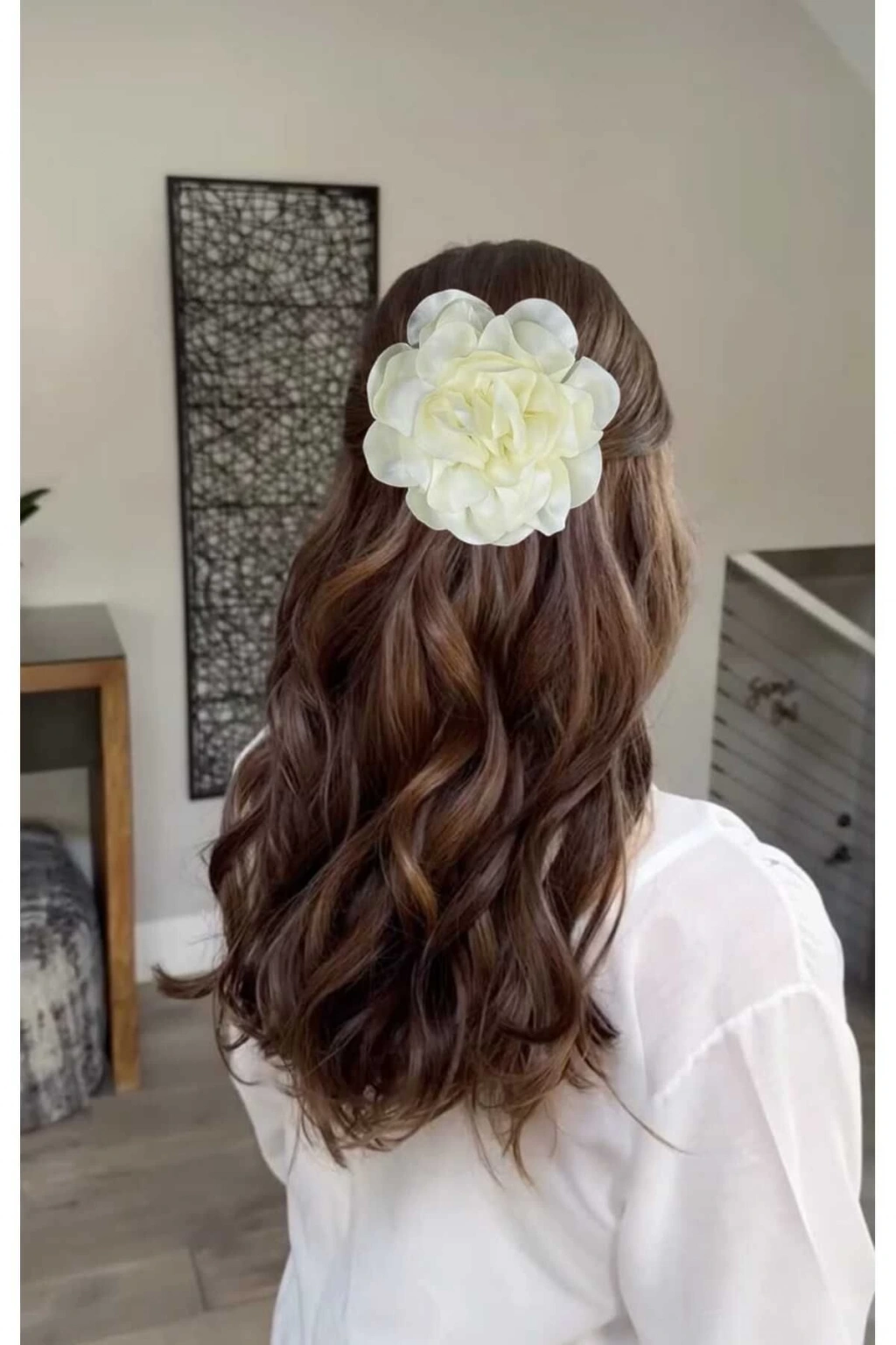 Vintage 15 cm Büyük Boy Kumaş Saten Gül Pens Toka